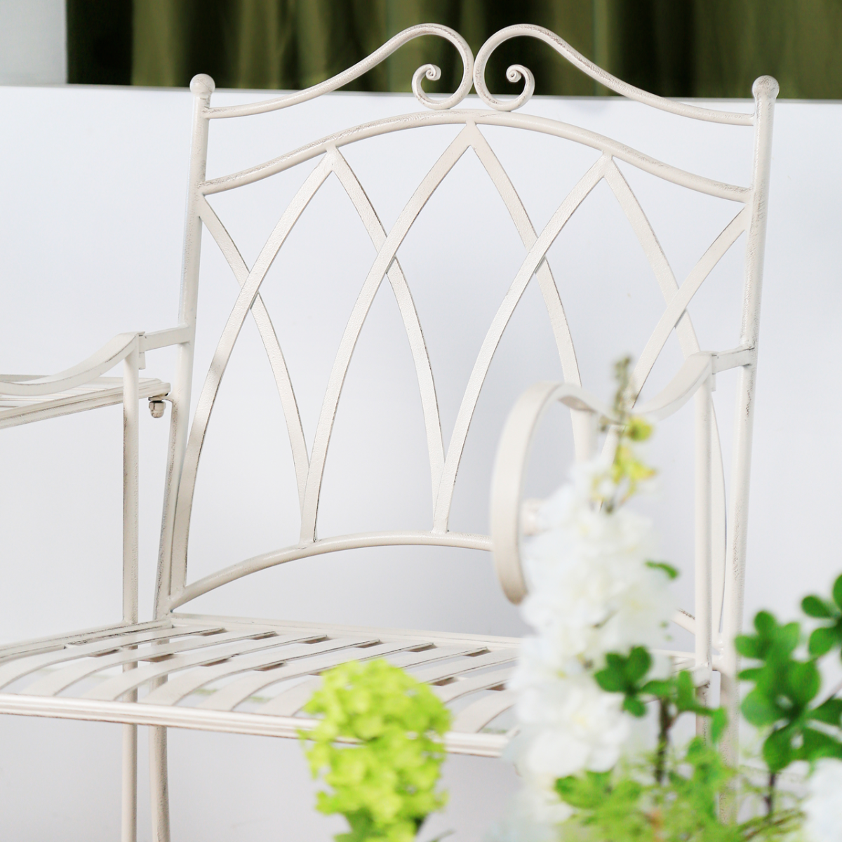 This 3 piece Sage Companion set features two wrought iron seats and a center table, powder-coated for rust prevention and welded for extra strength. The elegant lines and tasteful sage colour create a peaceful feeling wherever you place this set.