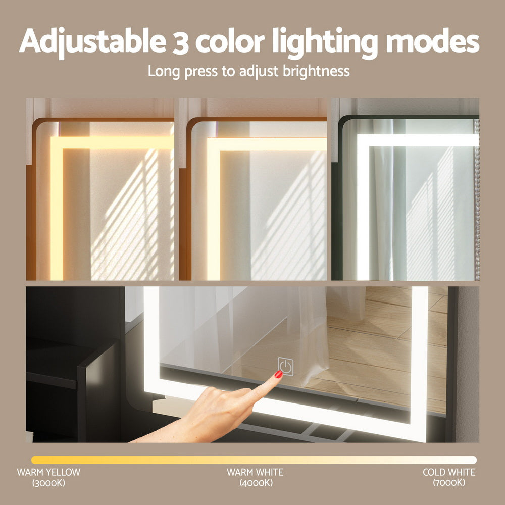 Upgrade your beauty routine with the Artiss LED Dressing Table. Featuring a Hollywood-style makeup mirror with an LED stripe, this vanity offers three adjustable light modes��warm, cool, and natural��for perfect lighting every time. The two spacious drawers ensure your beauty essentials stay neatly organised, while the anti-drop panel provides added safety and stability. The foam-padded stool adds comfort for extended use, and the sleek, easy-to-clean design ensures low maintenance. Ideal for bedrooms or professional settings, this modern vanity is the perfect blend of functionality and style.