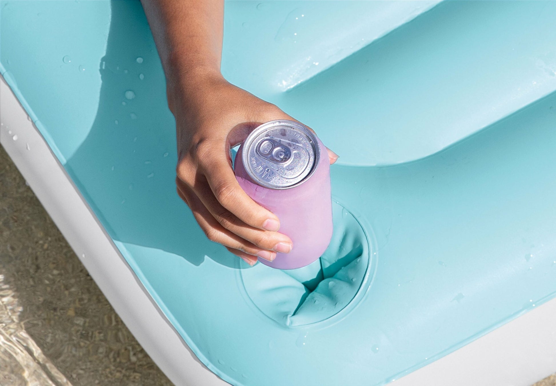 Relax on the water in the sun with the Intex Water Lounge Inflatable Blue 3.09m x 183cm x 18cm. The Intex Water Lounge is perfect for relaxing on the open water. Made with Advanced Fiber-Tech Construction, thousands of strong polyester fibers create a firm, durable and stable lounge. Keep your refreshments nearby with the 4 built-in cup holders for your favorite refreshments. Lift yourself easily on the water lounge with the 8 soft fabric handles. Also designed with 2 tie-downs for securing the lounge in the water.Details: