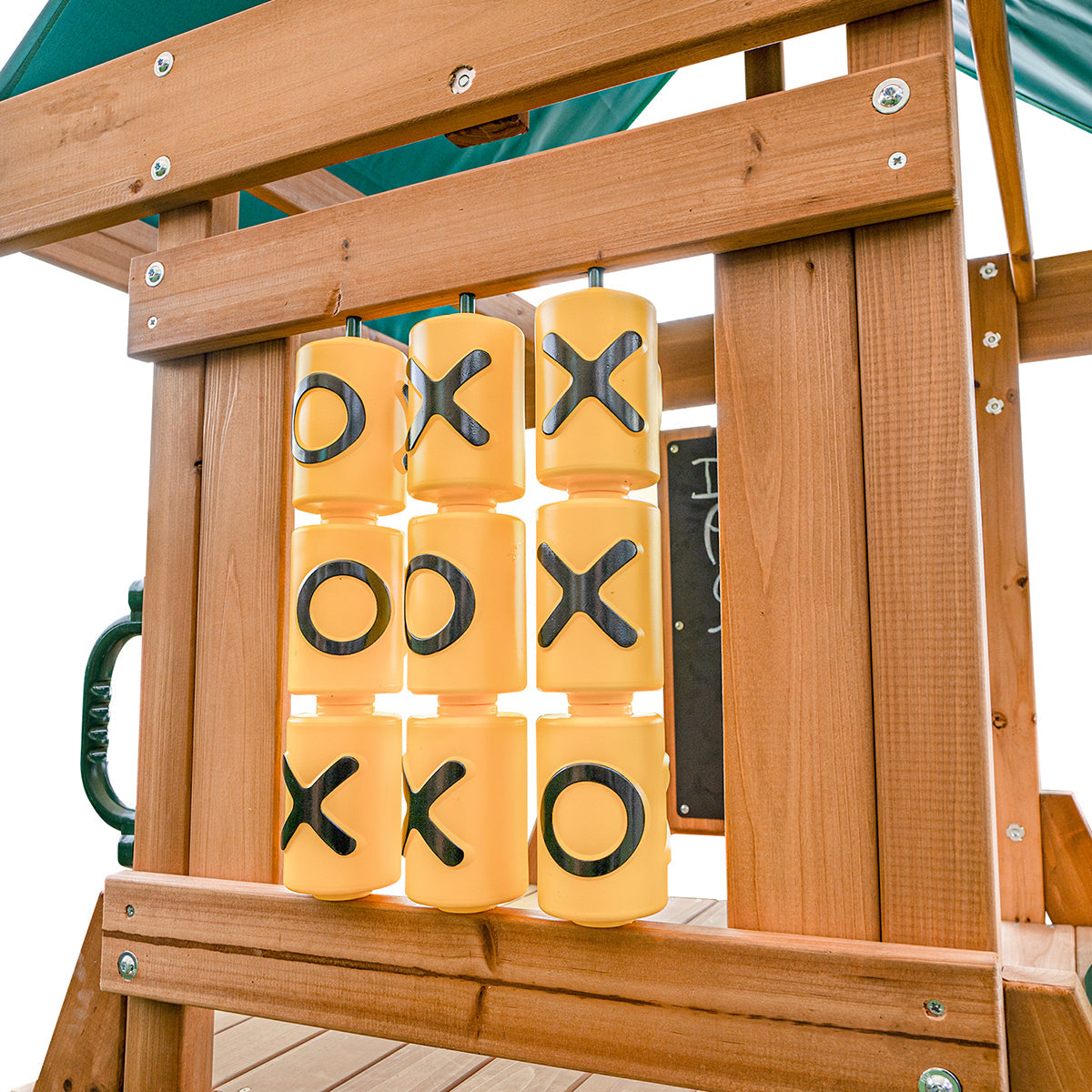 - 120cm high raised playhouse with noughts crosses, telescope chalkboard