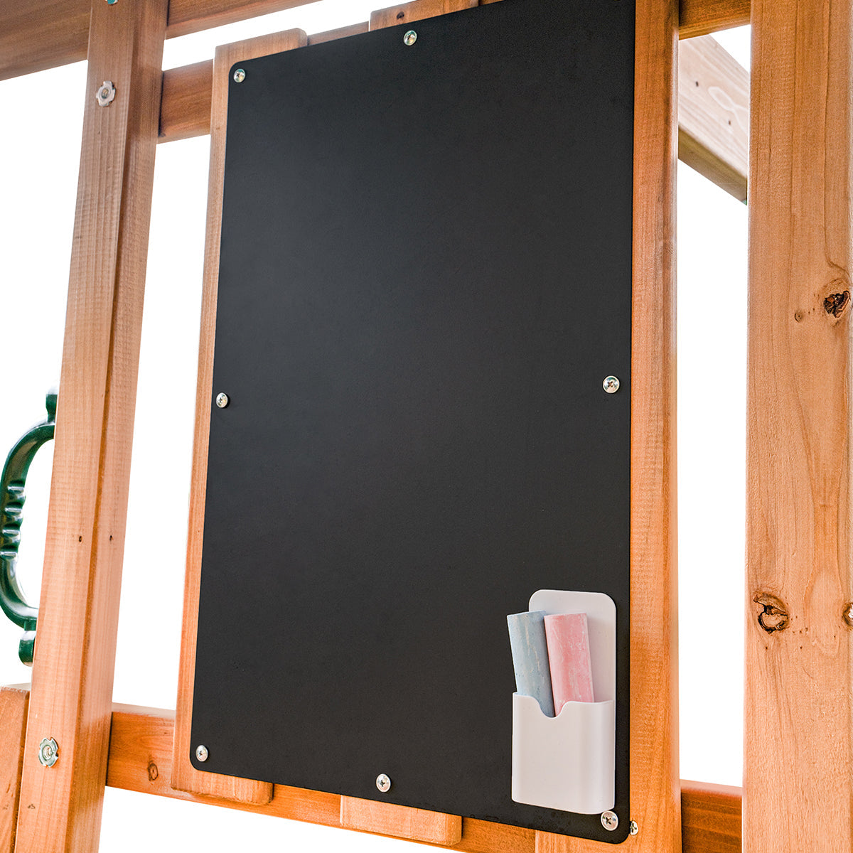 The Birmingham Play Centre Set is the ultimate backyard adventure for kids, offering more space and excitement than ever before. Kids can challenge themselves on the rock-climbing wall or easily access the play area via the sturdy ladder. The 3 Position Swing Beam comes equipped with two swings and a trapeze, giving your little ones endless options for a thrilling playtime. All Lifespan Kids products are built to last, with high-strength steel brackets featuring powder coating for maximum weather protection. The timber undergoes a high-temperature treatment, making it durable, resistant to rot and decay, and sustainably sourced to ensure a brighter future for your children.