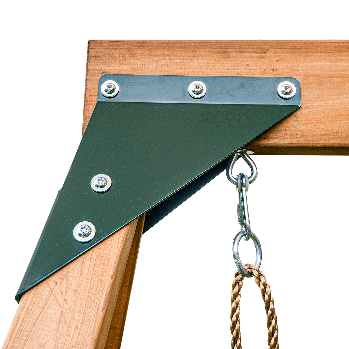The Birmingham Play Centre Set is the ultimate backyard adventure for kids, offering more space and excitement than ever before. Kids can challenge themselves on the rock-climbing wall or easily access the play area via the sturdy ladder. The 3 Position Swing Beam comes equipped with two swings and a trapeze, giving your little ones endless options for a thrilling playtime. All Lifespan Kids products are built to last, with high-strength steel brackets featuring powder coating for maximum weather protection. The timber undergoes a high-temperature treatment, making it durable, resistant to rot and decay, and sustainably sourced to ensure a brighter future for your children.