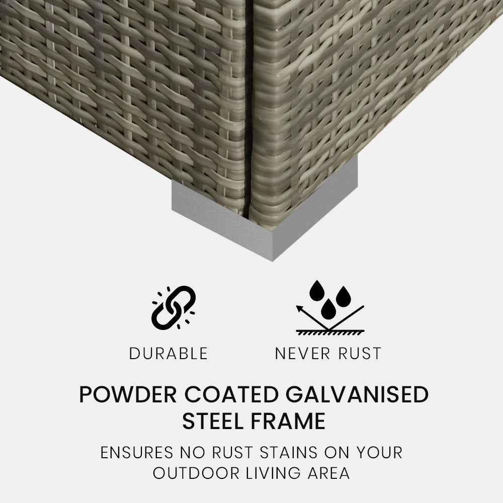 The Ottoman includes an ultra-comfy 10cm thick water-resistant seat cushion. The high-quality UV-resistant handwoven Suntech wicker in Marl Grey weave has a premium natural textured look. Mix and match with other London Rattan modular pieces to create your own custom outdoor setting. You can set it up in whatever configuration works best for you, making this London Rattan outdoor ottoman a great addition to any outdoor space.
