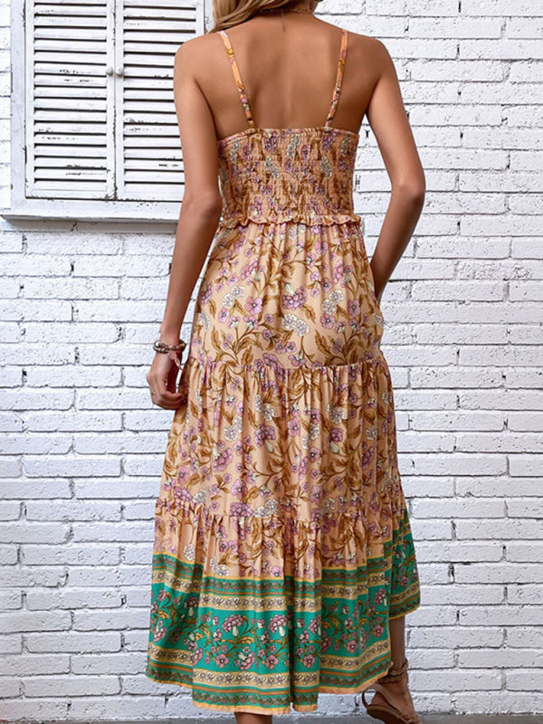 New women's casual holiday bohemian floral print suspender dress
