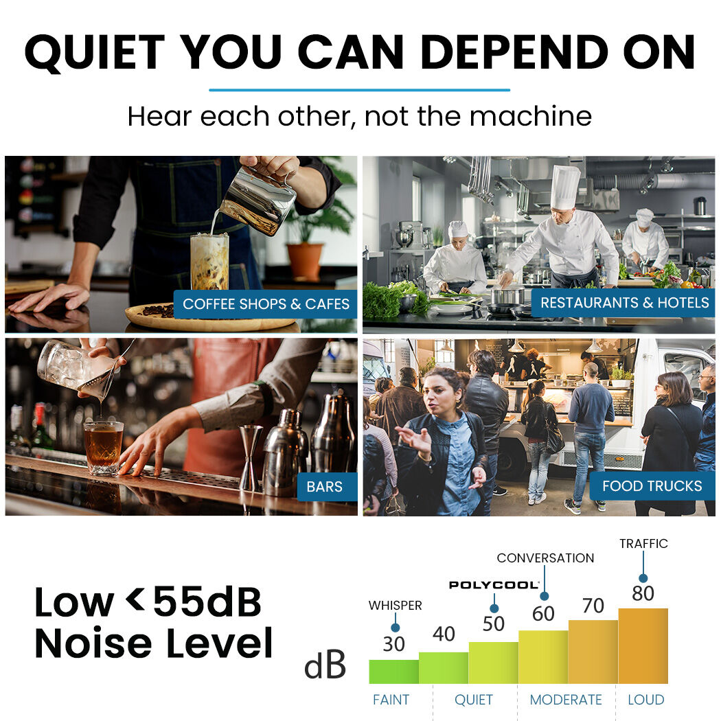 - Operates quietly at less than 55dB, suitable for front-of-house use